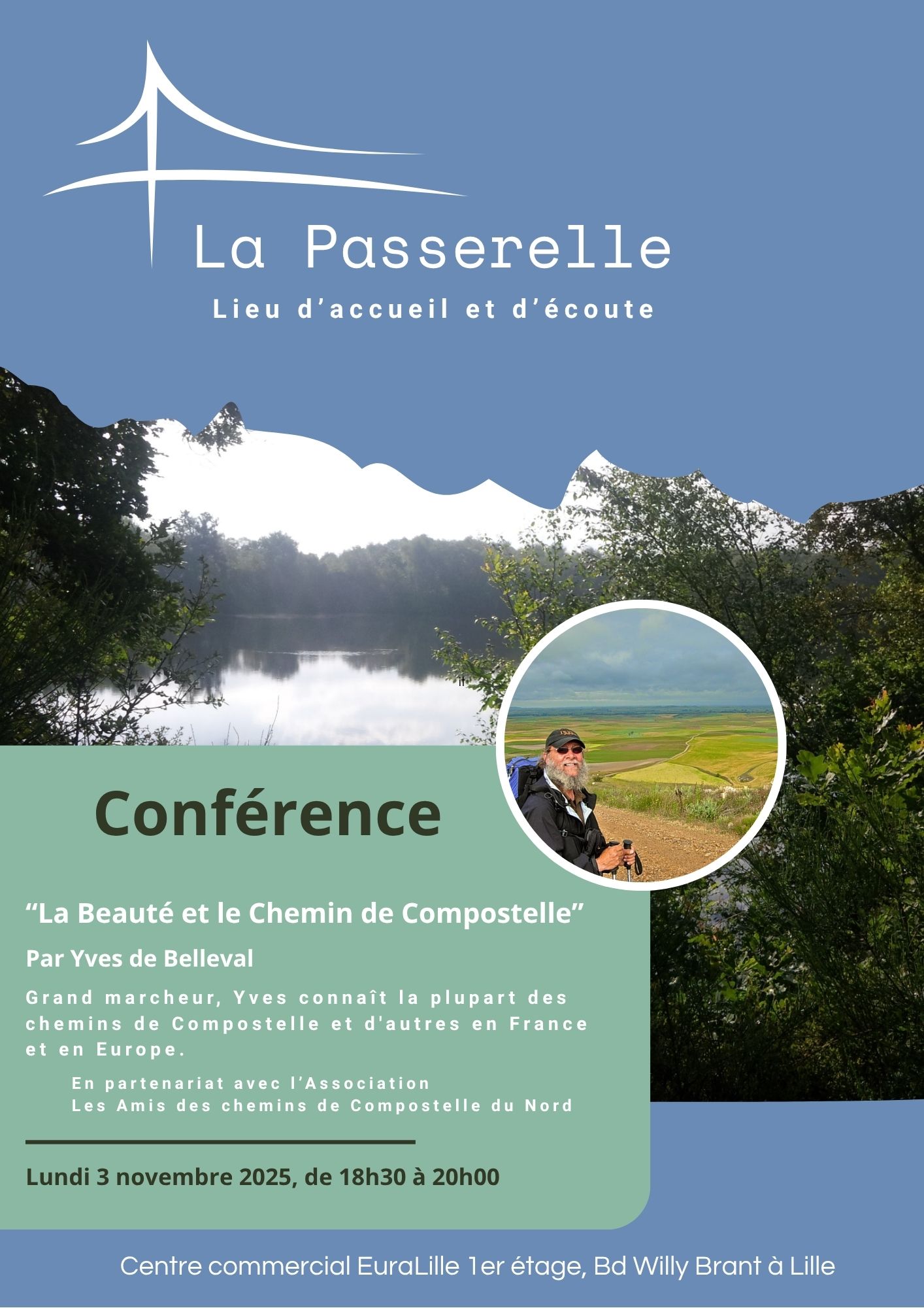En collaboration avec ” La Passerelle ” , Compostelle Nord vous propose une conference inédite d’Yves de Belleval qui nous vient spécialement du Quebec .